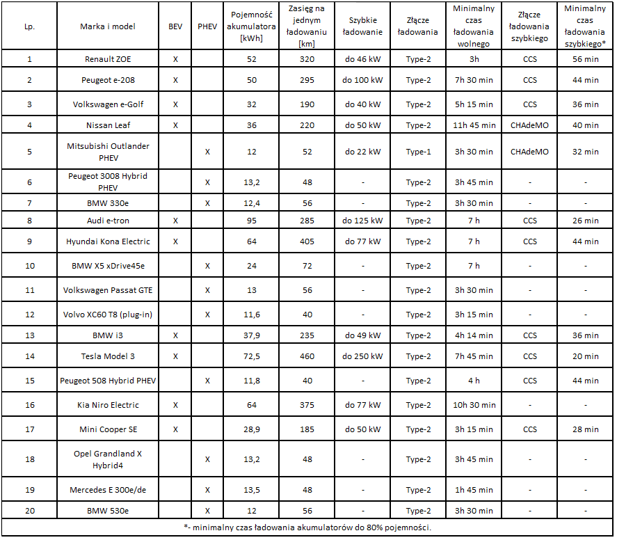 1. Różne rodzaje samochodów elektrycznych (EV – ang. Electric Vechicle)